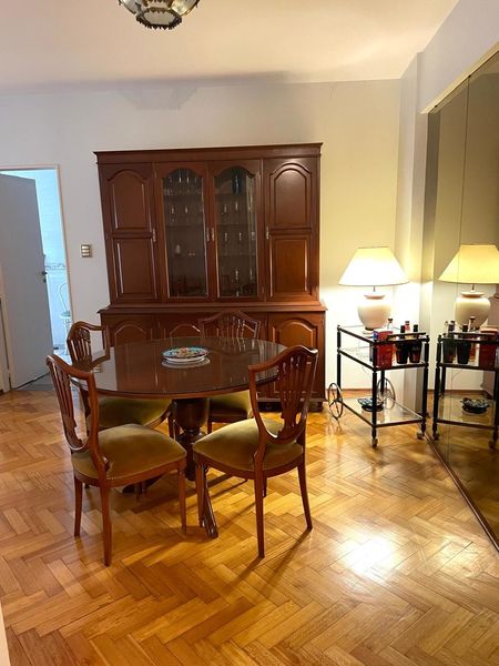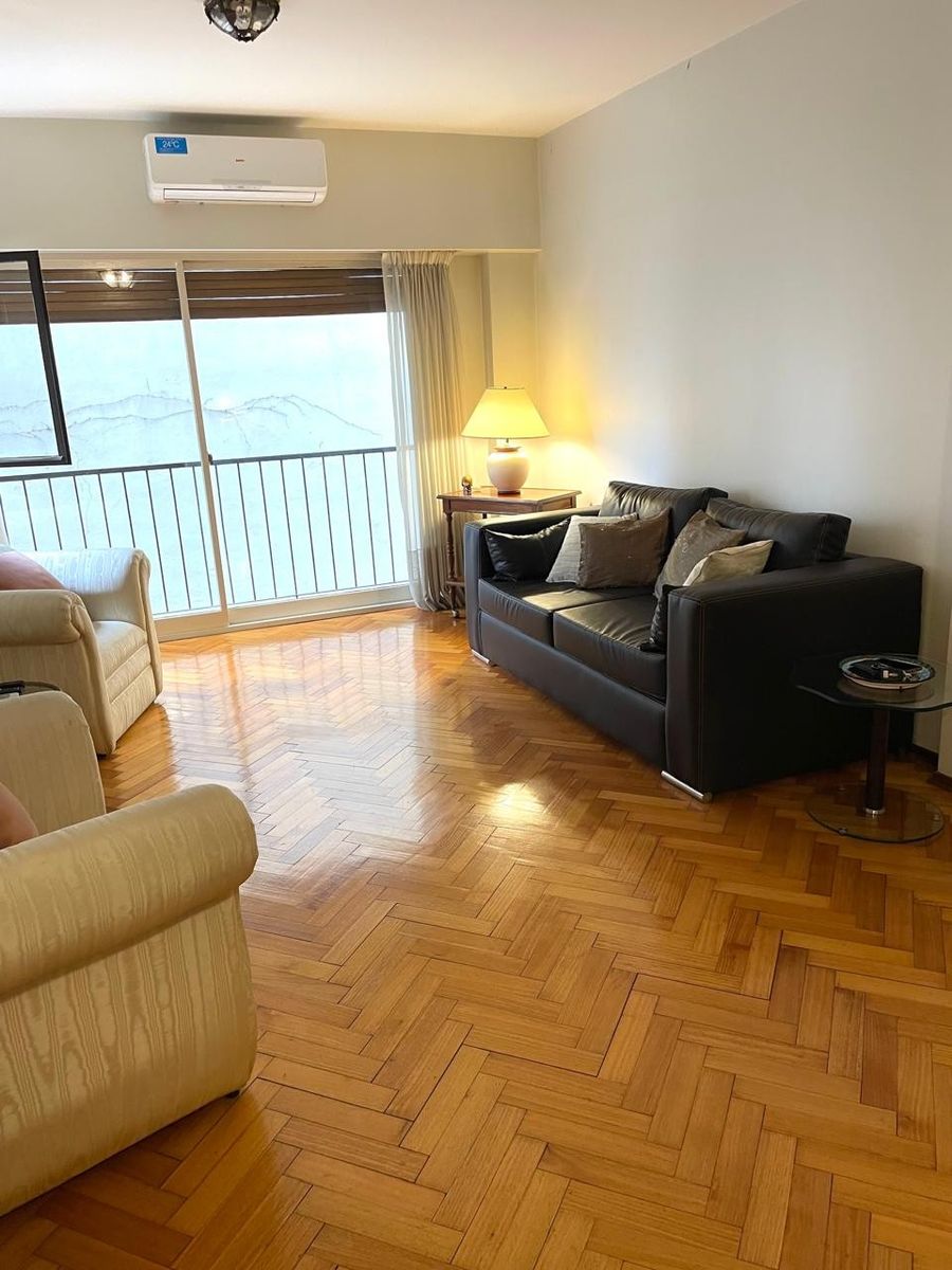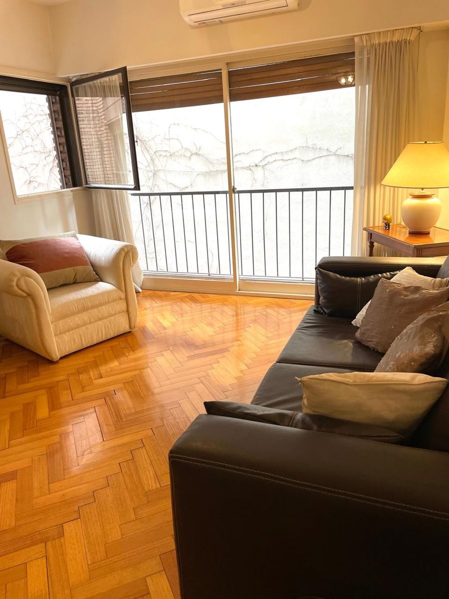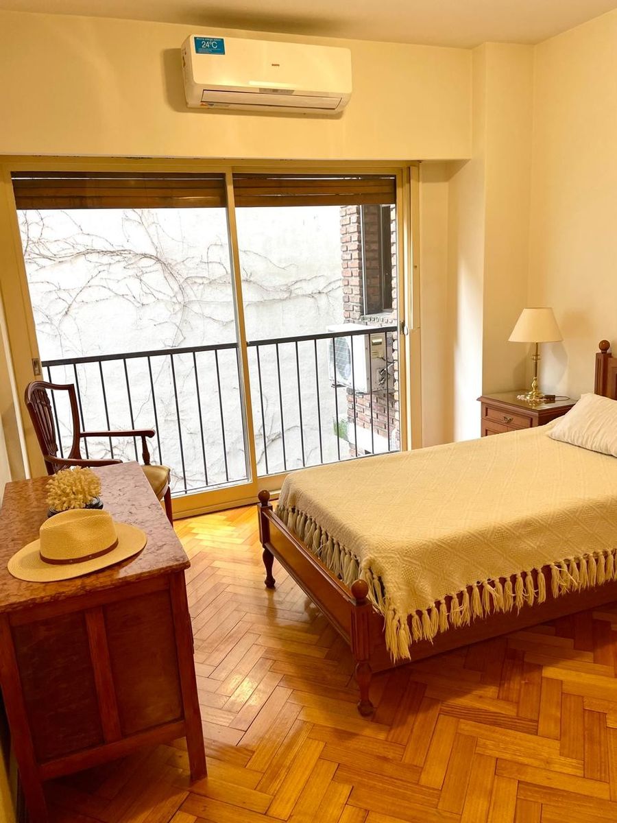 Pisos de parquet muy bien conservados, cocina con comedor diario y entrada de servicio, baño compartimentado, lavadero separado y dependencia de servicio también con placard. La unidad cuenta con 3 equipos de aire acondicionado y puertas blindadas. Cochera fija en primer piso.