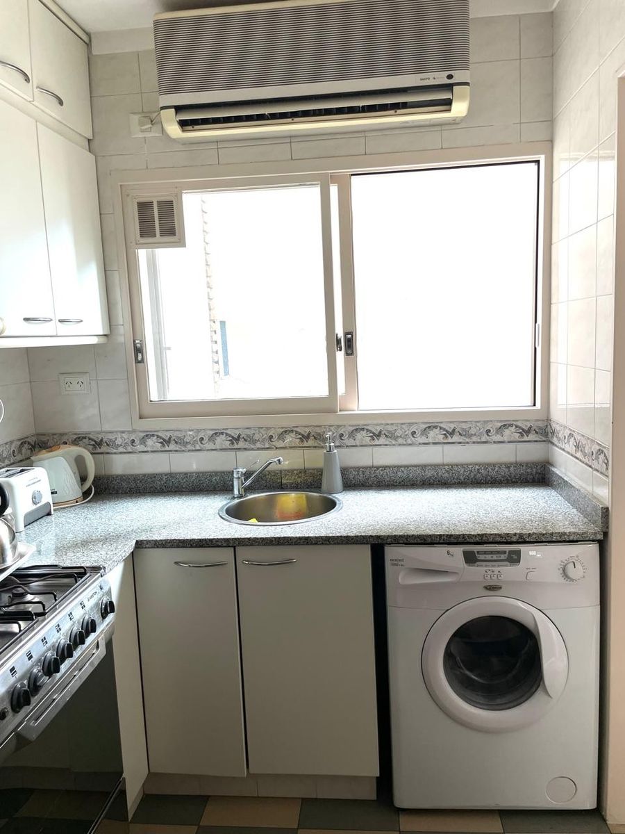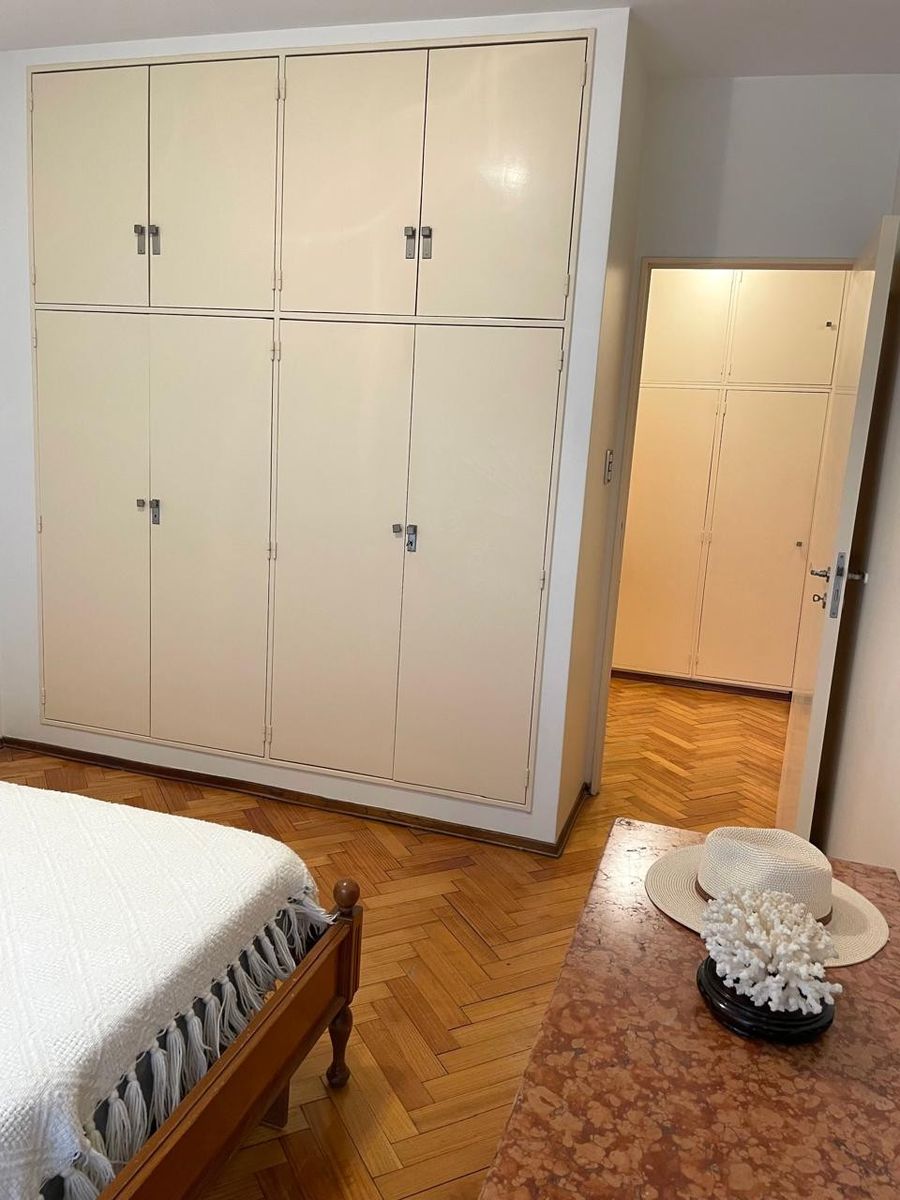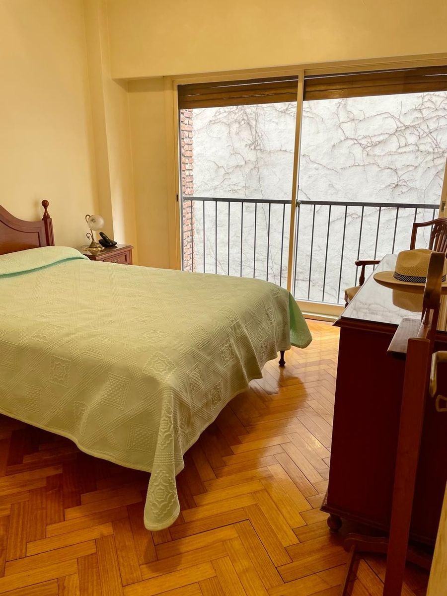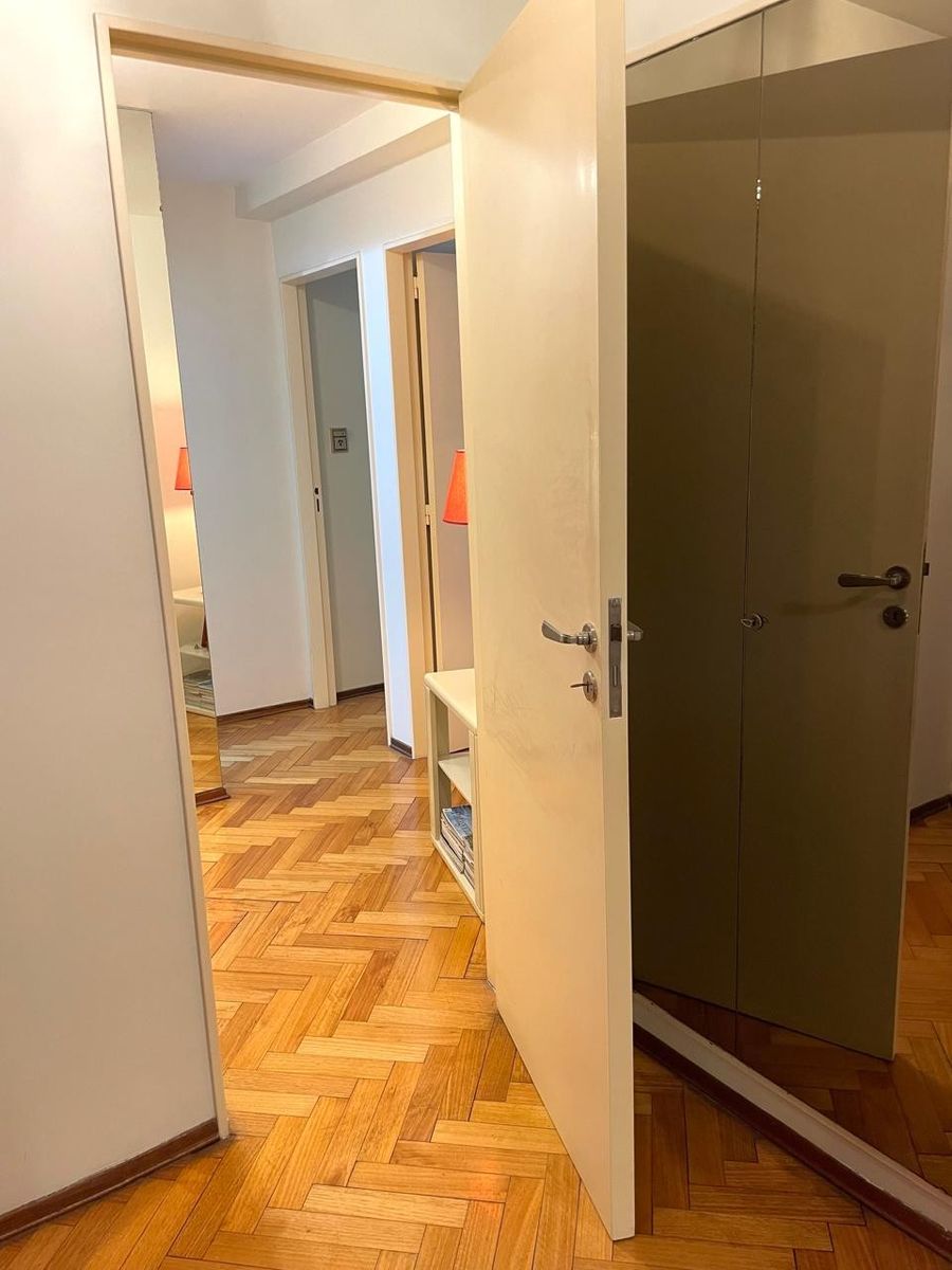 Pisos de parquet muy bien conservados, cocina con comedor diario y entrada de servicio, baño compartimentado, lavadero separado y dependencia de servicio también con placard. La unidad cuenta con 3 equipos de aire acondicionado y puertas blindadas. Cochera fija en primer piso.