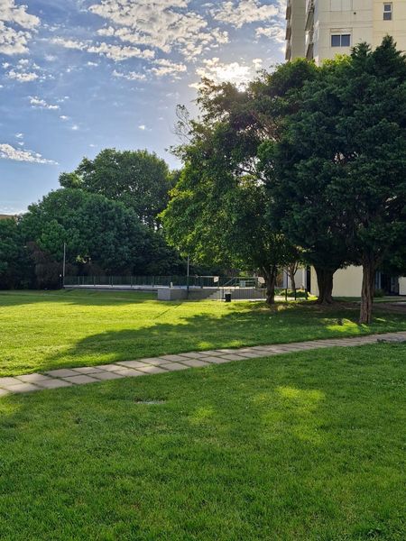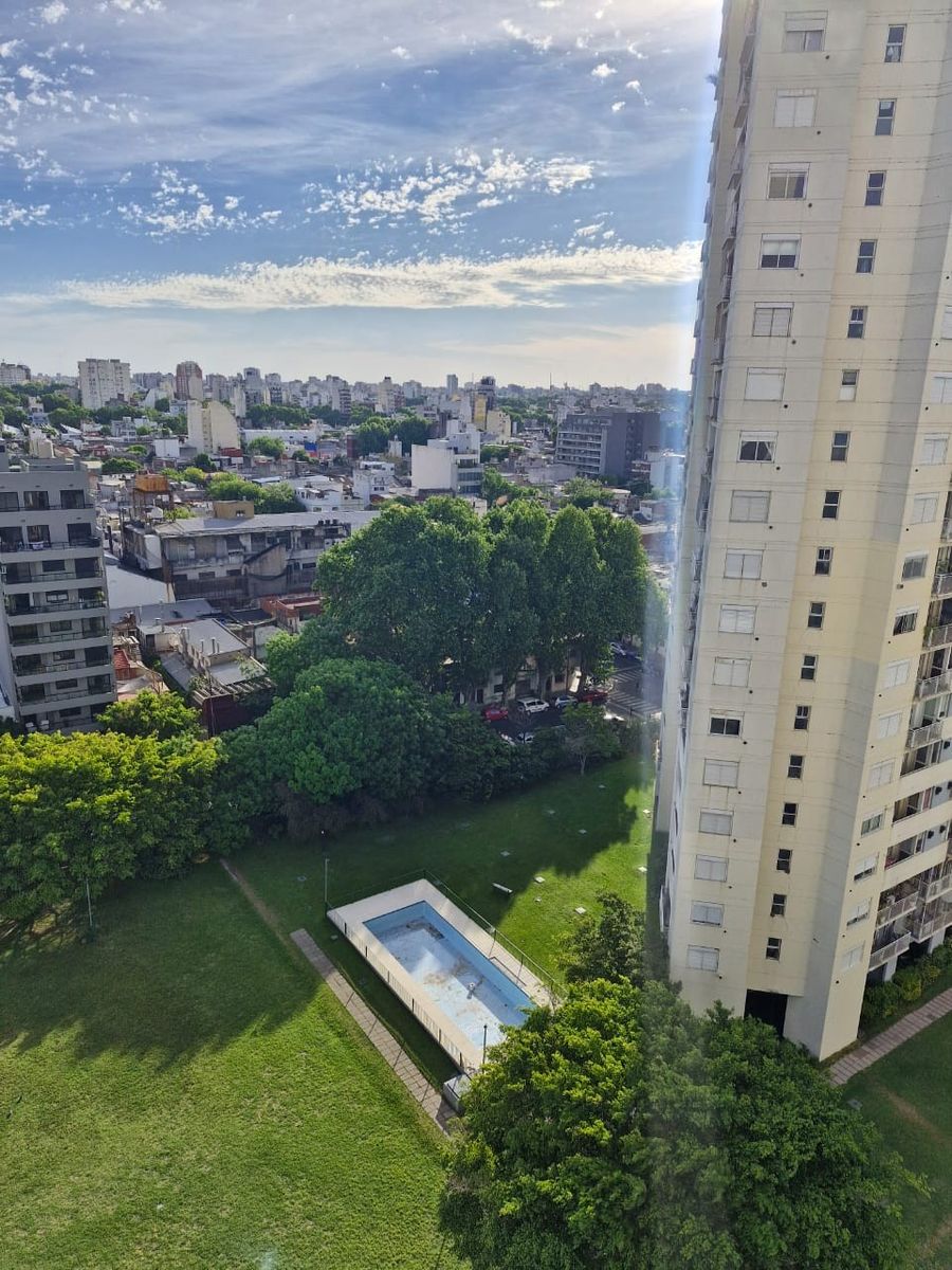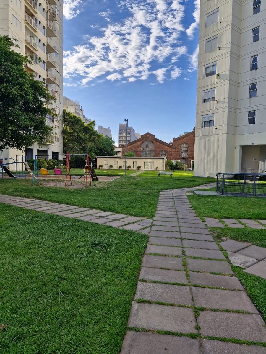El edificio está emplazado dentro de una manzana donde hay 3 torres con parque, juegos para niños, pileta, SUM, canchas de fútbol y muchas zonas verdes.